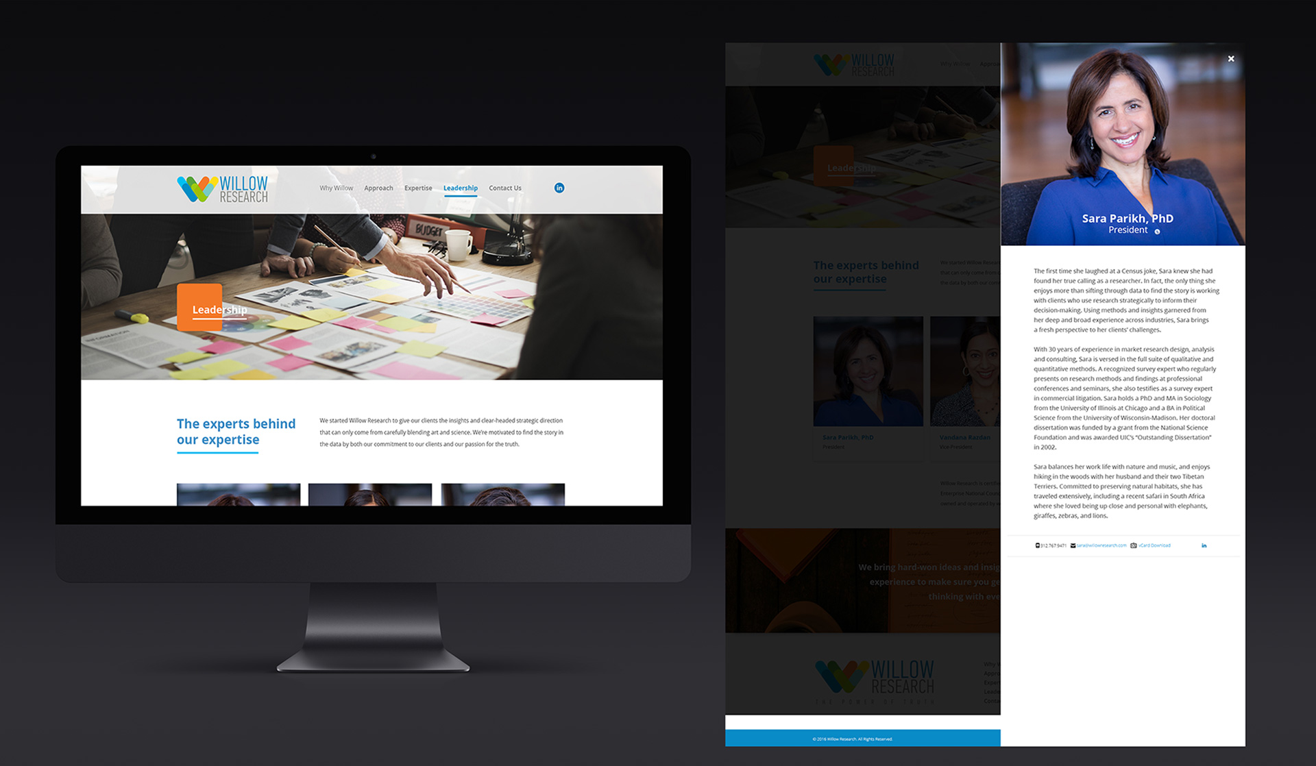 Develop a brand that exposed the layers and depths to their research methodology and leveraged Willow’s unique “winnowing” as a basis for the brand. An award winning tone and personality that is demonstrated across the logo, website and entire system