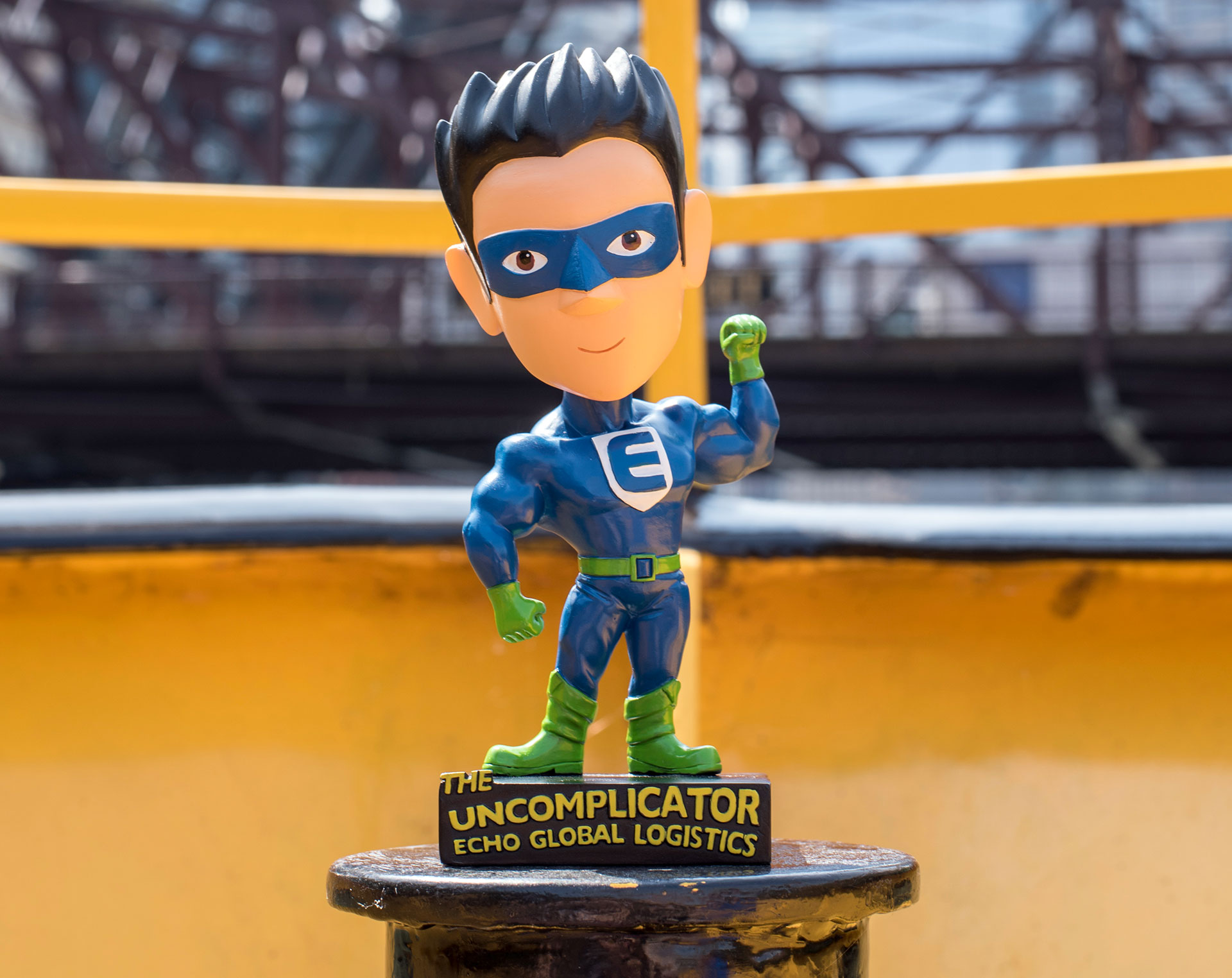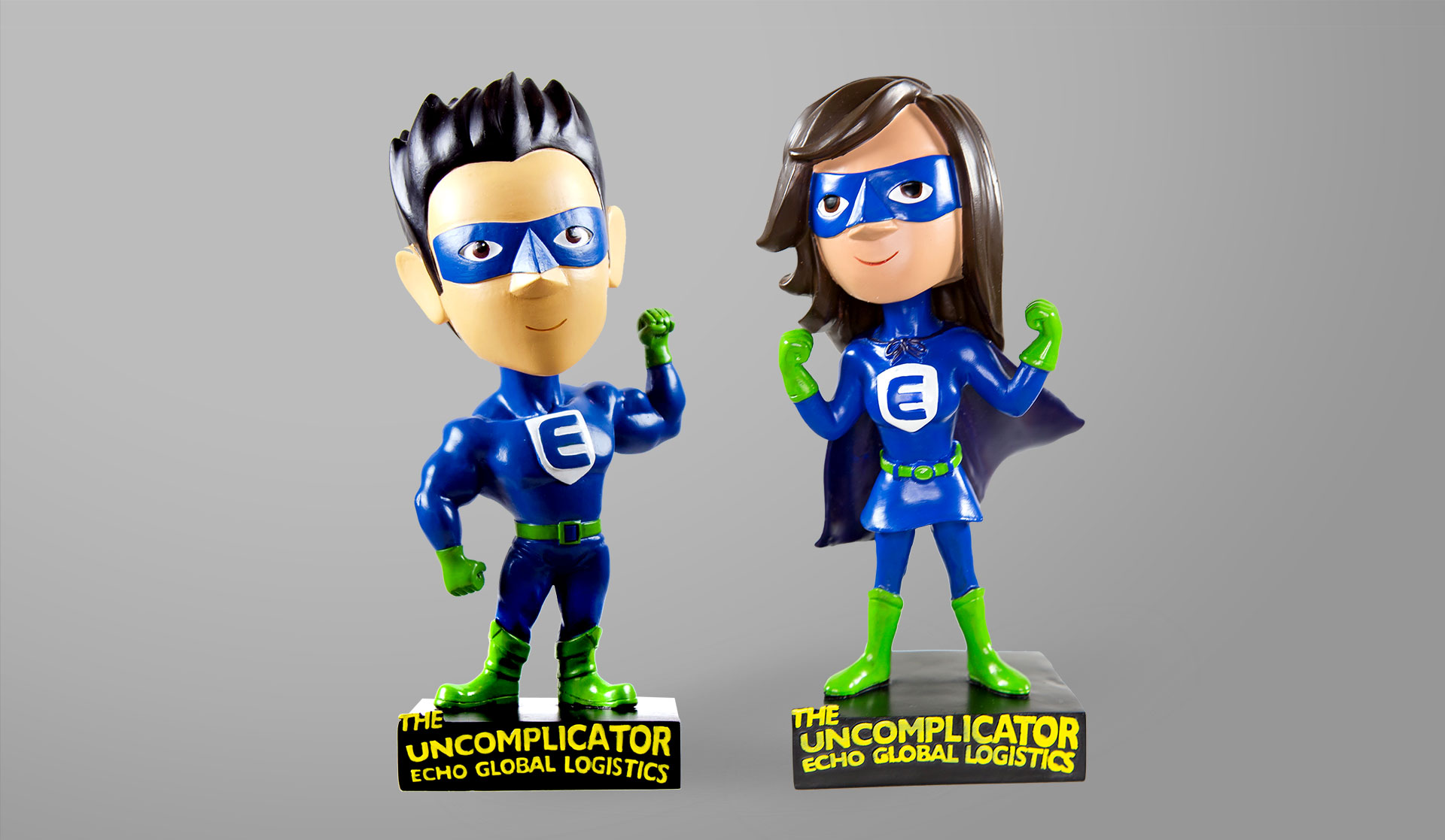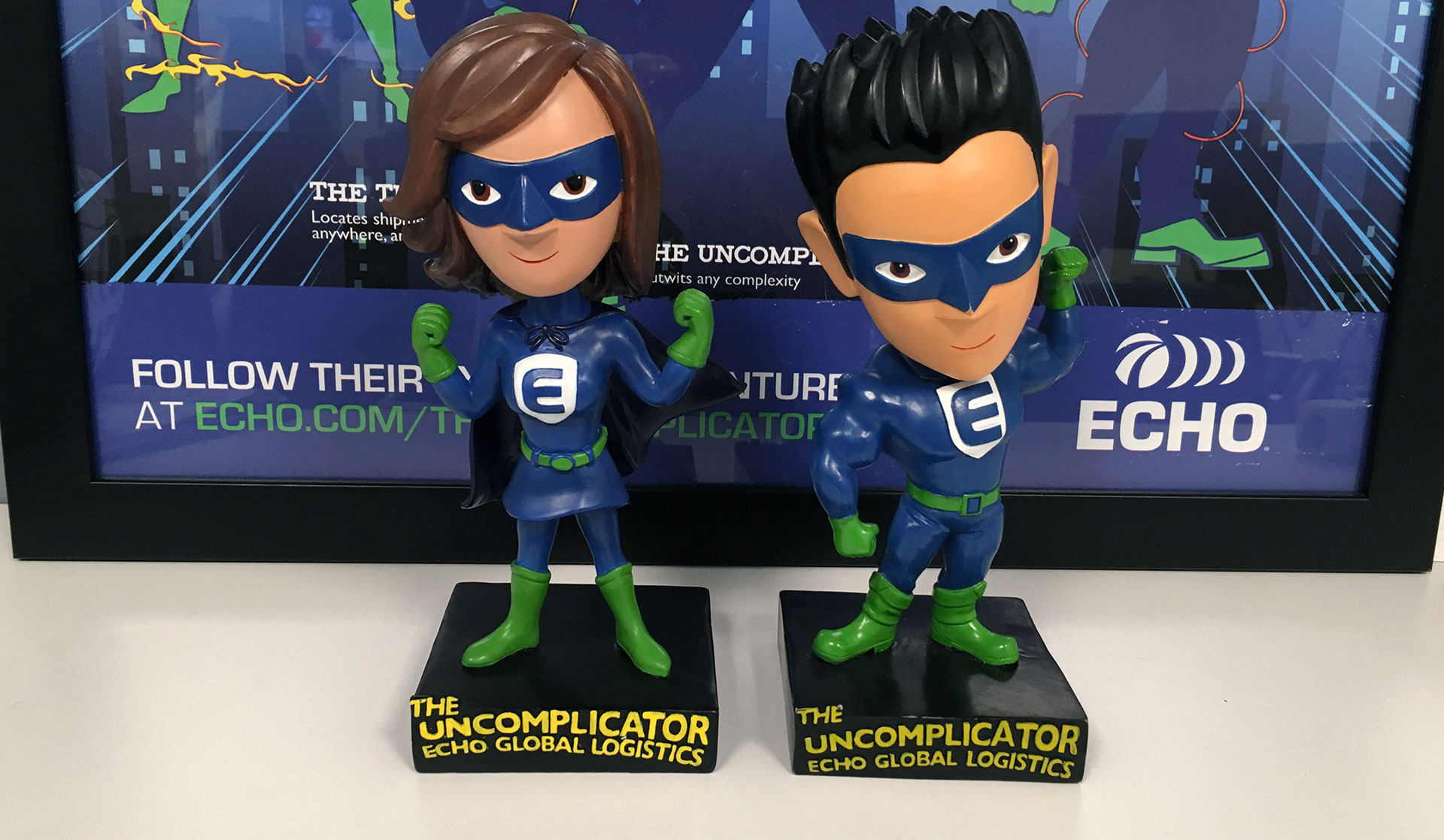 Superpowers. Since it’s their people and their dedication to simplifying transportation management that makes Echo Global Logistics special, we showcase team member’s inner superhero, the Uncomplicator. The creative leveraged comic book tropes, and to excite team members and clients, we created a bobbleheads as a reward for encouraging voting. Echo Global Logistics now won 3 years in a roll with this campaign for Inbound Logistics award.